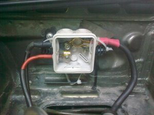 Un câble d’alimentation de forte section part maintenant du coffre jusqu’au coupe circuit installé sur la planche de bord.